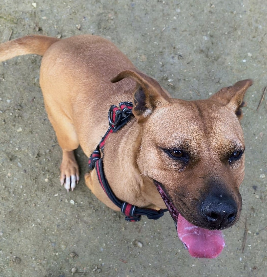 Mara es una perrita buena, muy sociable con personas y con perros con los que siente afinidad.